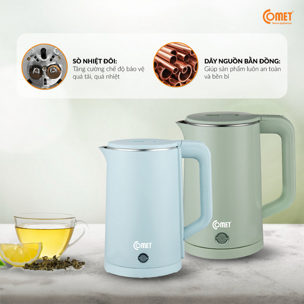 Bình đun siêu tốc Comet CM8226 với những tính năng hữu ích, mang vẻ ngoài đẹp mắt, tạo tính thẩm mỹ cao, phù hợp với mọi không gian bày trí trong gian bếp.